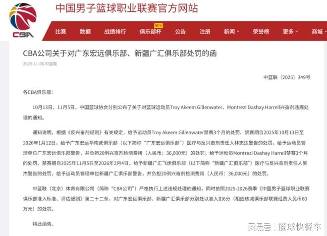 CBA宣布重要决定,广东队再被重罚,球迷拍手称赞,杜锋要小心就在昨天,CBA再次宣布了一项处罚决定,让广东队损失严重,因为之前吉伦沃特被检测出兴奋剂违规,所以广东队面临被重罚,之前已2025-11-07 02:26:54 -